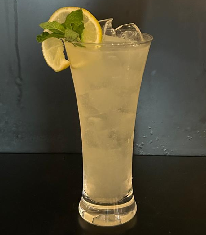 Vodka, ginger beer, lime, and a dash of masala bitters—served in a copper mug with a lime wedge and candied ginger.